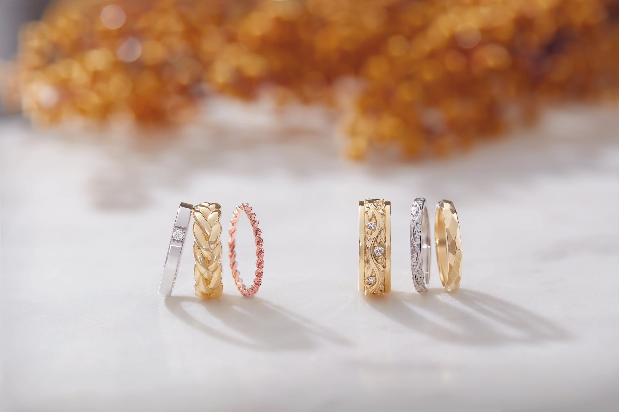 exquisite detail. From classic gold to modern designs adorned with diamonds, each ring is a symbol of love, commitment, and personal style. Discover the perfect band to mark your